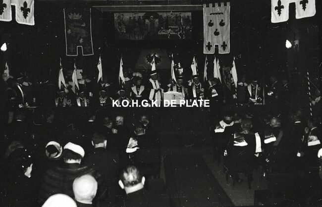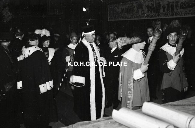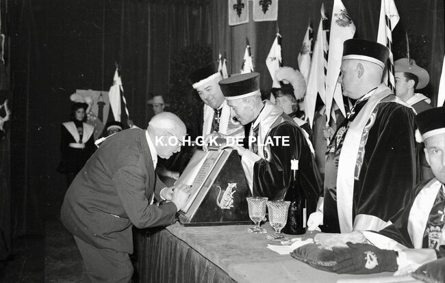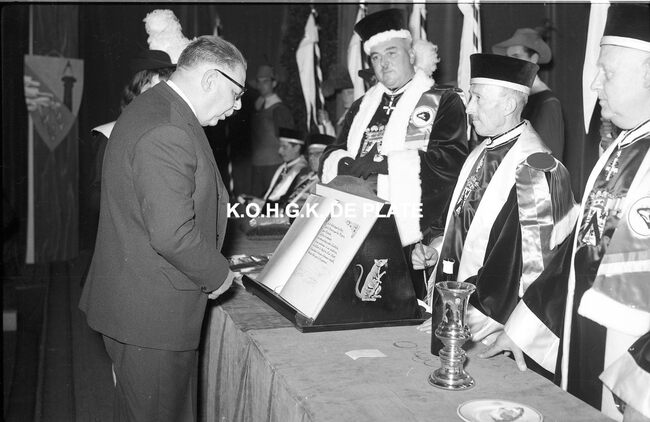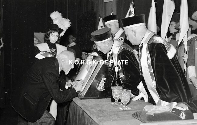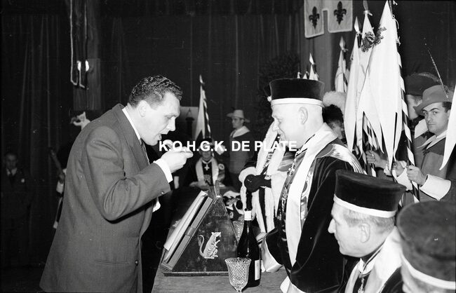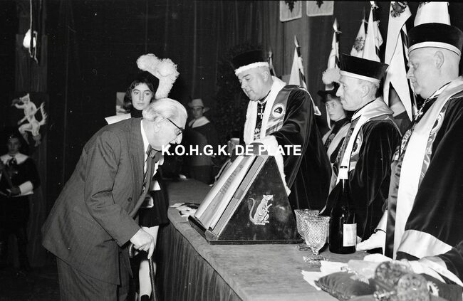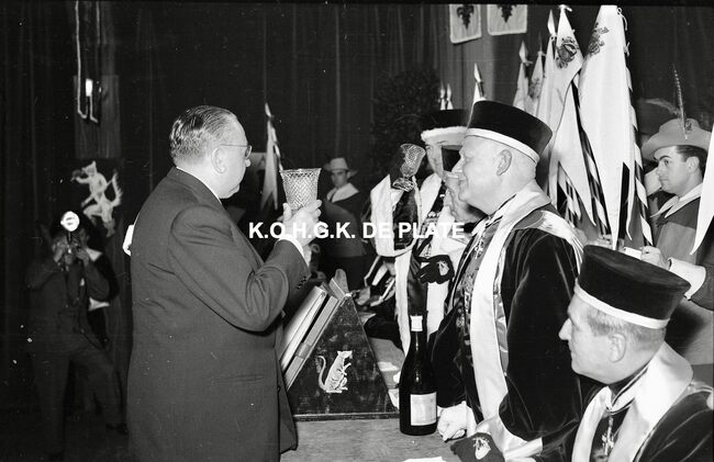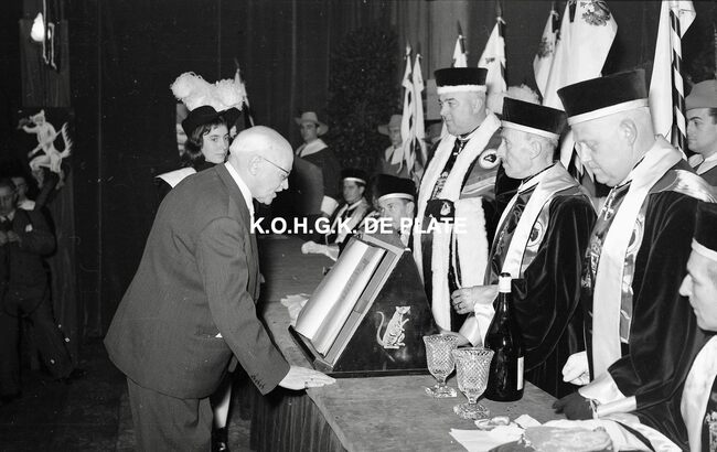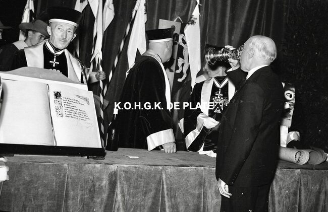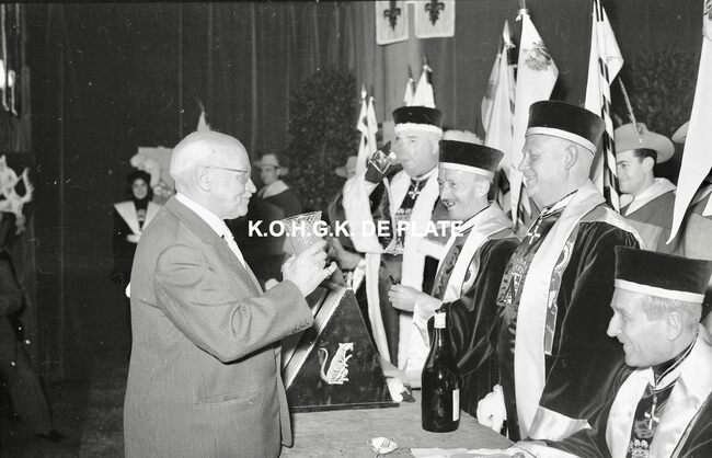 Negatief : 6 x 9 cm. - Emile Bulcke wordt ridder van de "Confrérie van de Rat Mort"