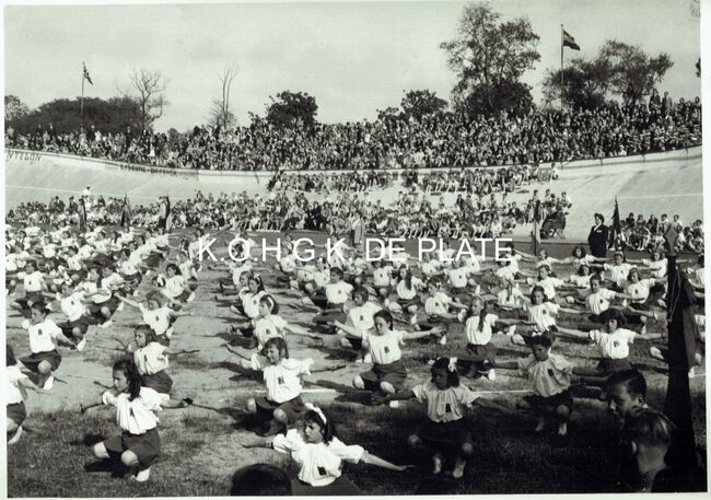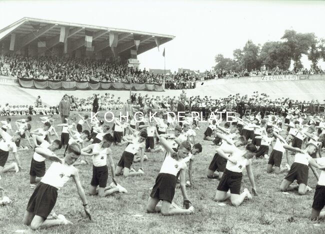Vergroting. - Formaat : 28 x 40 cm. - Jaarlijks openluchtfeest. Zang, turnoefeningen en sportwedstrijden zijn de ingrediënten van de manifestatie.