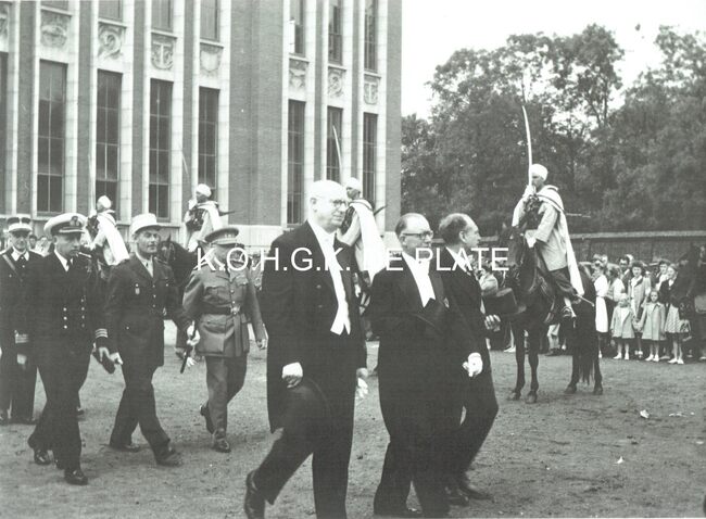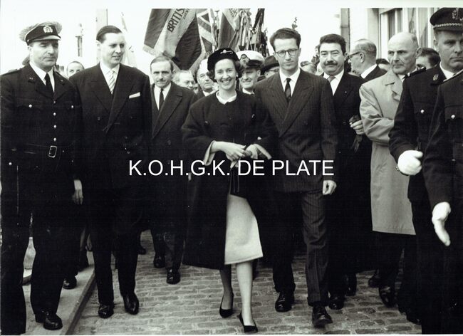 Vergroting. - Formaat 28 x 40 cm. - Hier in het gezelschap van burgemeester Adolf Van Glabbeke en zijn echtgenote.