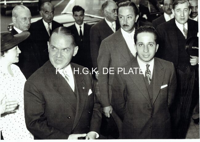Vergroting. - Formaat : 28 x 40 cm. - Ontvangst door burgemeester Adolf VAN GLABBEKE te Oostende van een prins van Laos en zijn echtgenote.