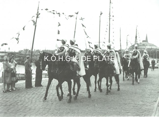 Vergroting. - Formaat : 28 x 40 cm. - In de periode 19-23 juli was er een internationaal "Concours Hippique", met een feest van de Spahis. Een afdeling Noord Afrikaanse ruiters, Spahis, opgesteld op de…