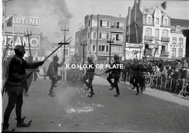 Formaat : 12,5 x 19 cm. - De groep "Blauwe Vlinders" uit Oostende op het Wapenplein Negatief : Formaat : 6 x 9 cm. - FOTOARCHIEF 202 FOTO LUC 0 DOOS 20 ROL 3