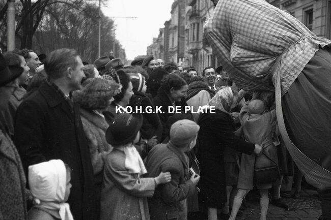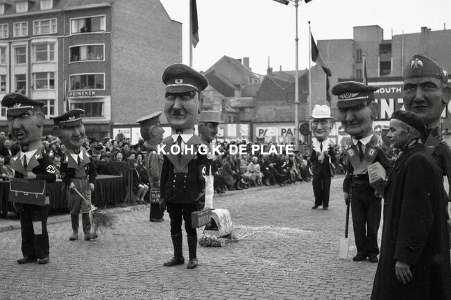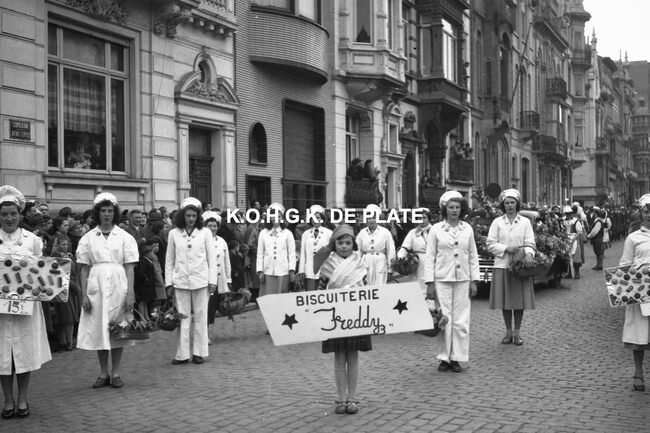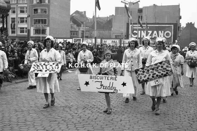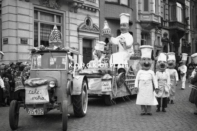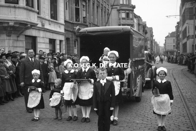 Negatief : 4 x 6,5 cm. - Hier met hun praalwagen op het Wapenplein