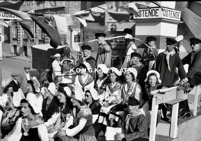 Negatief : 4 x 6,5 cm. - De Oostendse folkloregroep "De Vismijnvrienden", hier in de Kapellestraat
