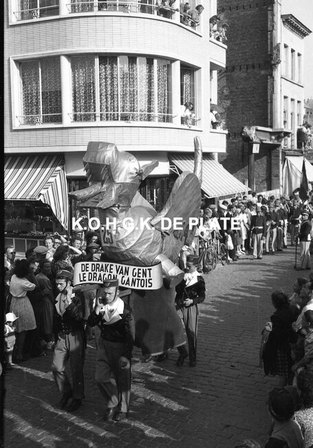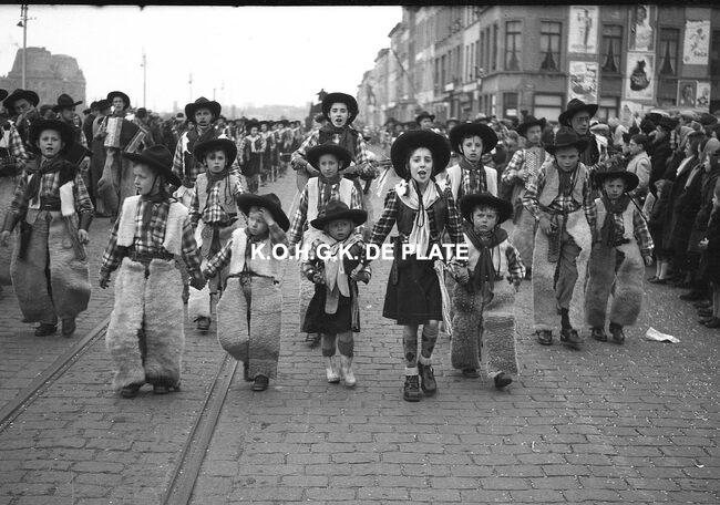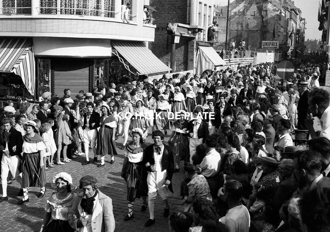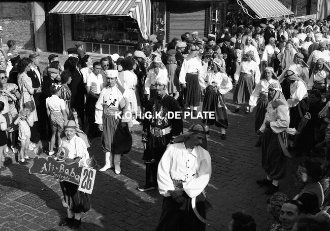 Formaat : 12,5 x 19 cm. - De groep "Ali Baba en de 40 rovers" in de Kapellestraat, hoek Ooststraat Negatief : Formaat : 4 x 6,5 cm. - FOTOARCHIEF 202 FOTO LUC 0 DOOS 1 ROL 12