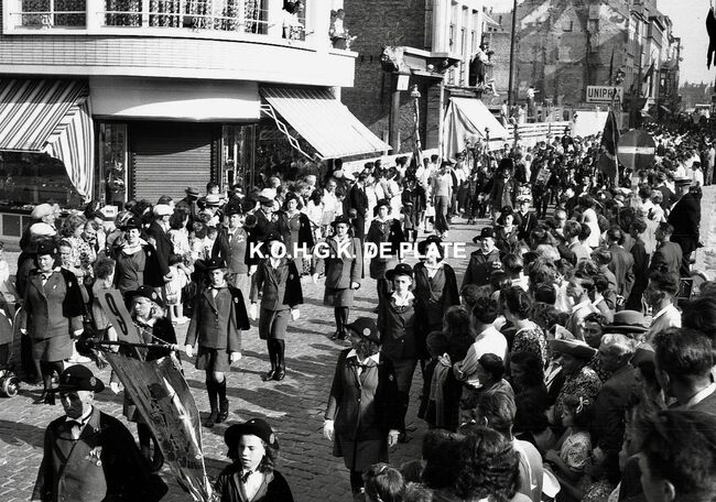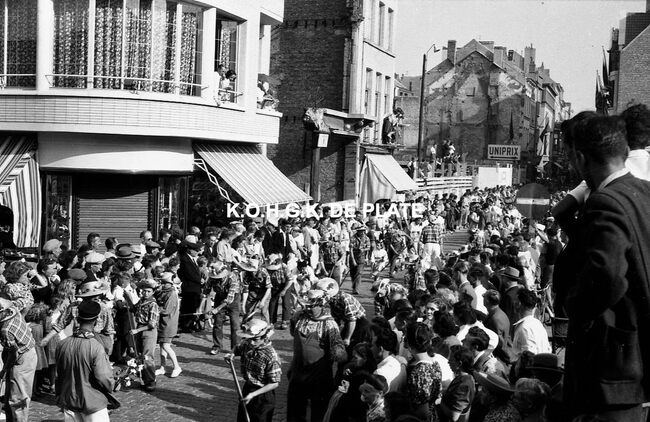 Negatief : 4 x 6,5 cm. - Groep 26 "Ali Baba en de 40 rovers" in de Kapellestraat, hoek Ooststraat