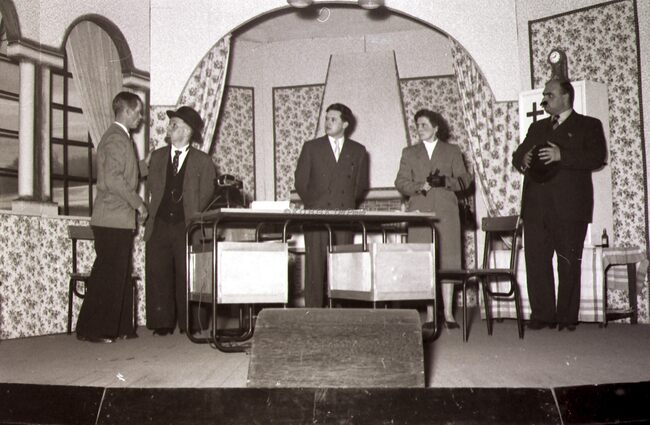 Toneelvereniging Dageraad uit Bredene een scene uit een opvoering.