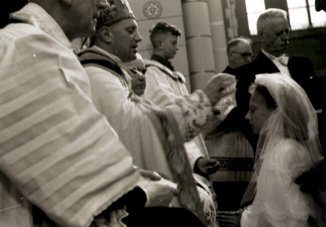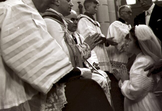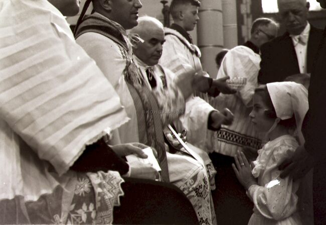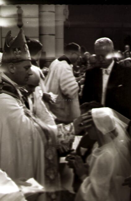 Vorming van een meisje in de Sint Jozefskerk door de bisschop van Brugge Emiel DE SMEDT.