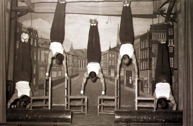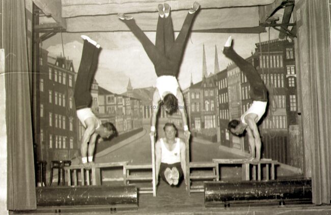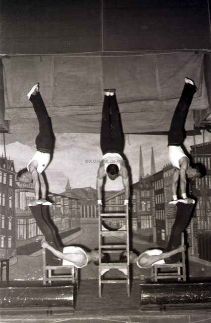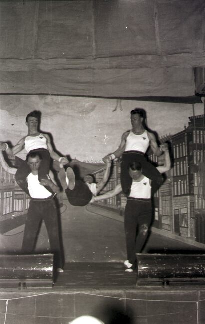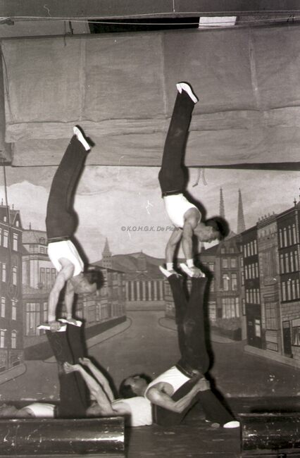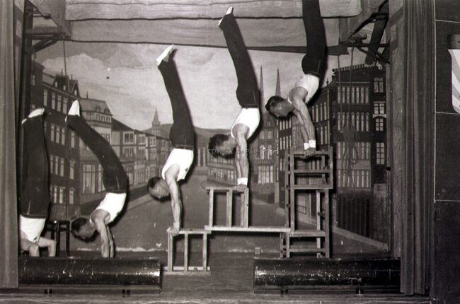 Optreden van een turnvereniging (in een Bredens zaaltje ?).