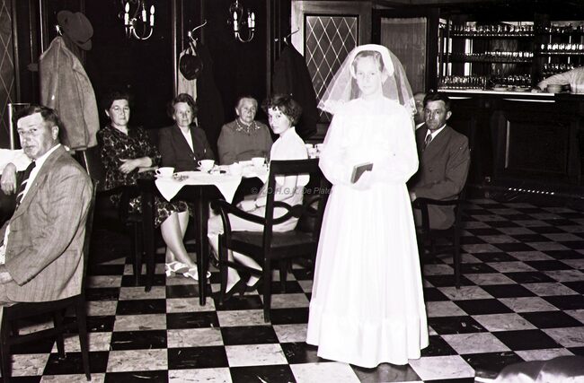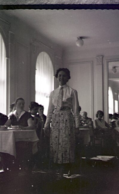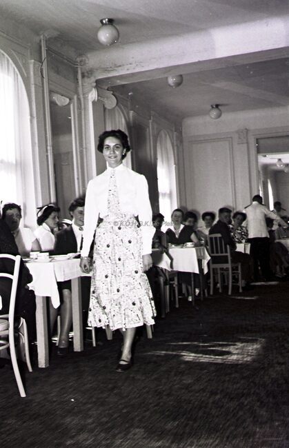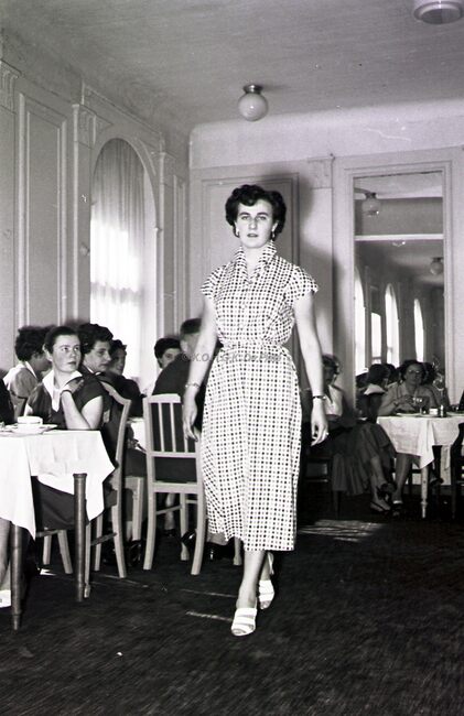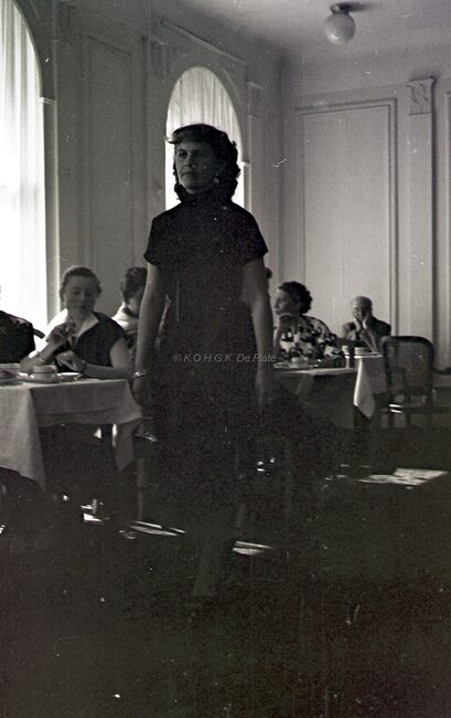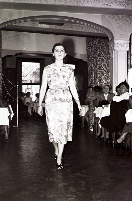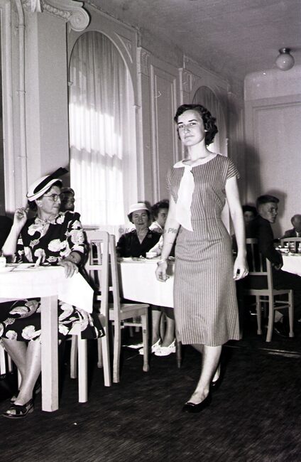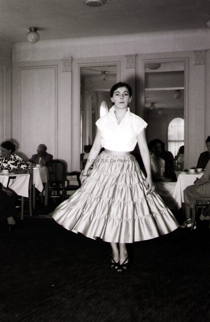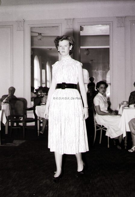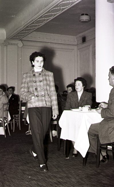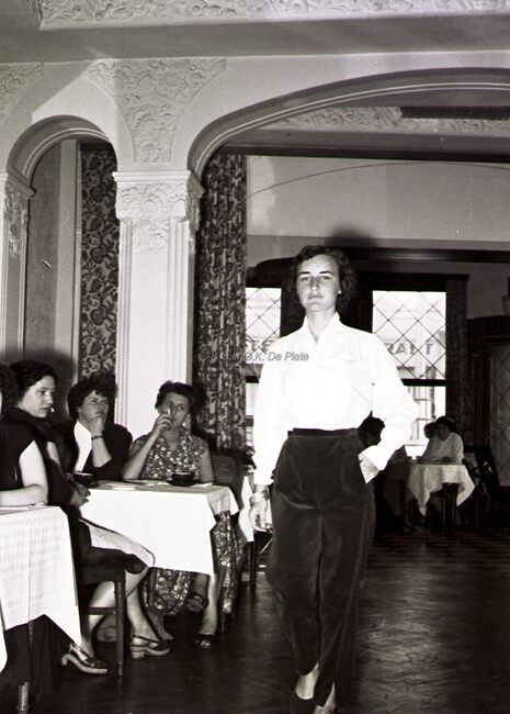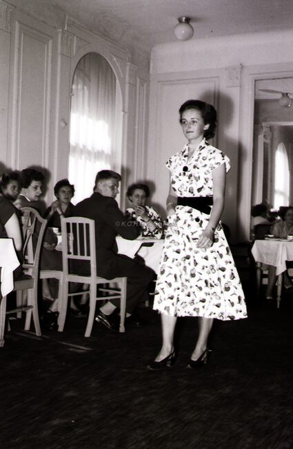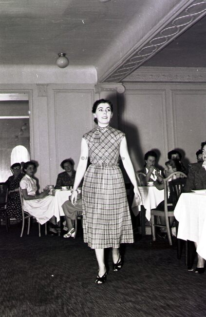 Foto : Modeshow "Snij- en Naaischool Hilda Ureel". Hôtel de la Couronne. 1954