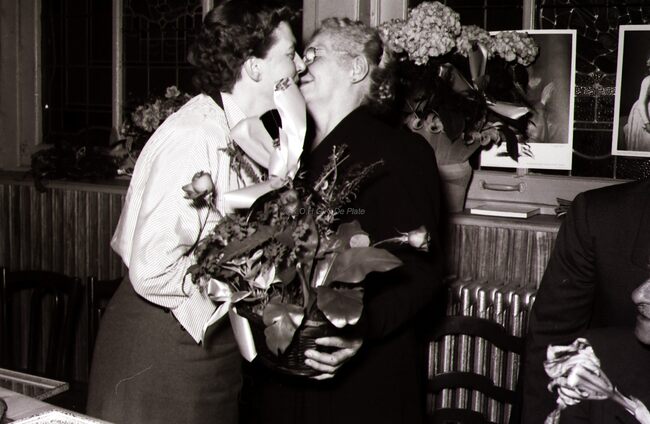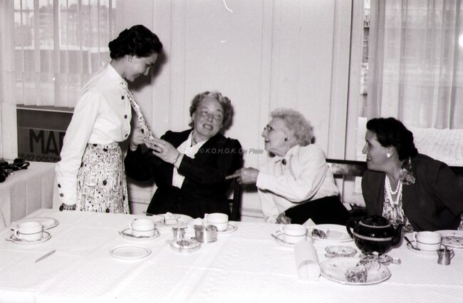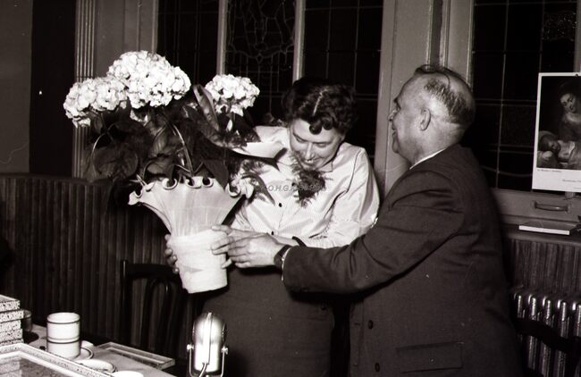 Foto : Moederfeest van de Socialistische Vooruitziende Vrouwen (SVV). Ons Achturenhuis. Langestraat. 1954