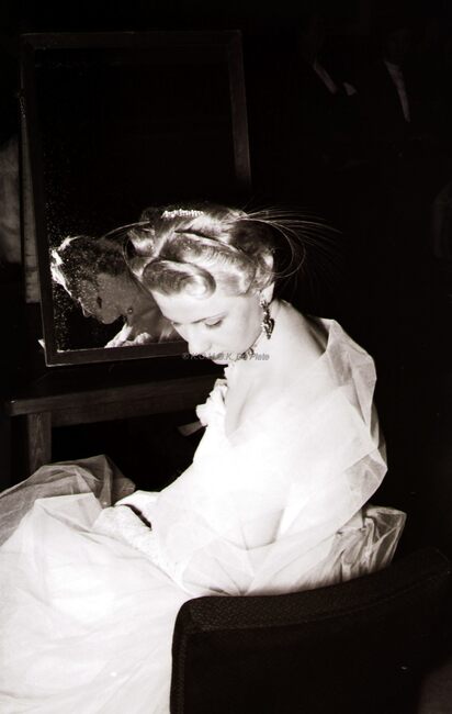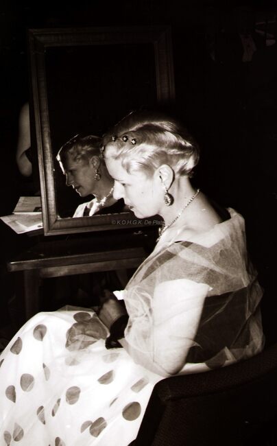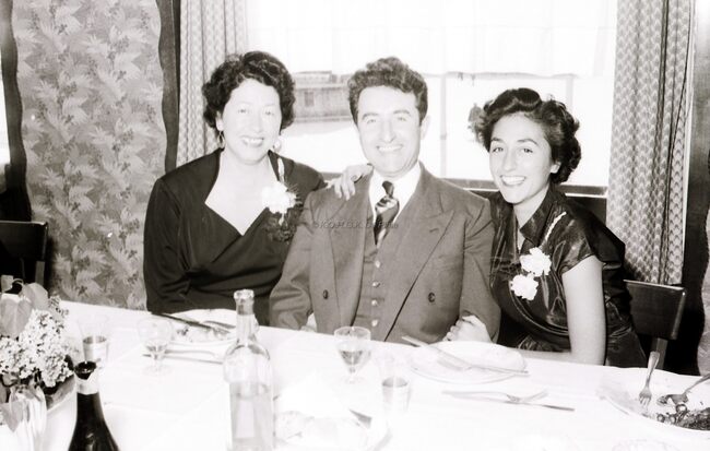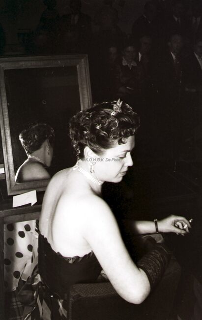 De voorzitter van de kappersvereniging en twee aanminnige kapsters (?) op het jaarlijks banket.