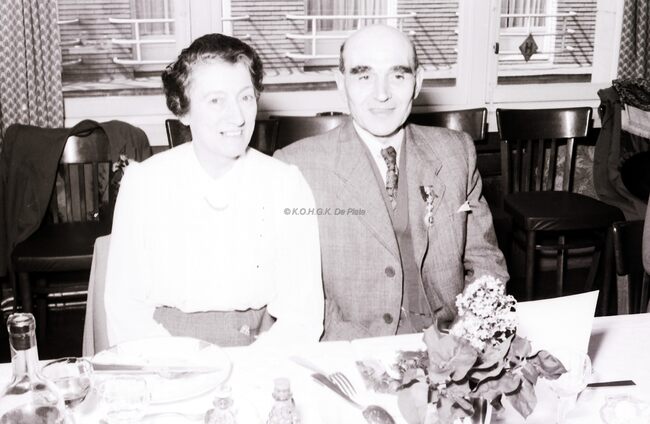 Feest bij de kappers.Enkele deelnemers en hun dames op het banket van de vereniging.