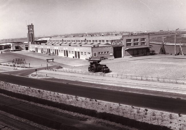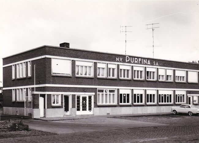Formaat : 13 x 18 cm. - De kantoren van N.V. Purfina aan de Hendrik Baelskaai. Filiaalbedrijf van Petrofina opgericht te Oostende in 1923 voor tankopslag en verkoop in het district van vloeibare brandstoffen en…