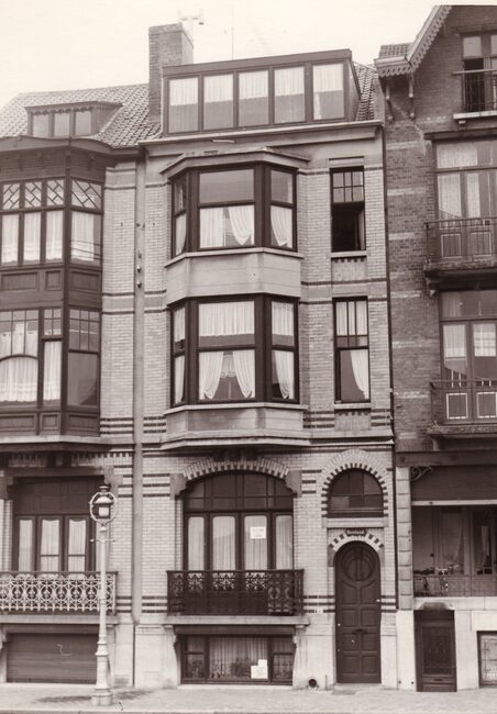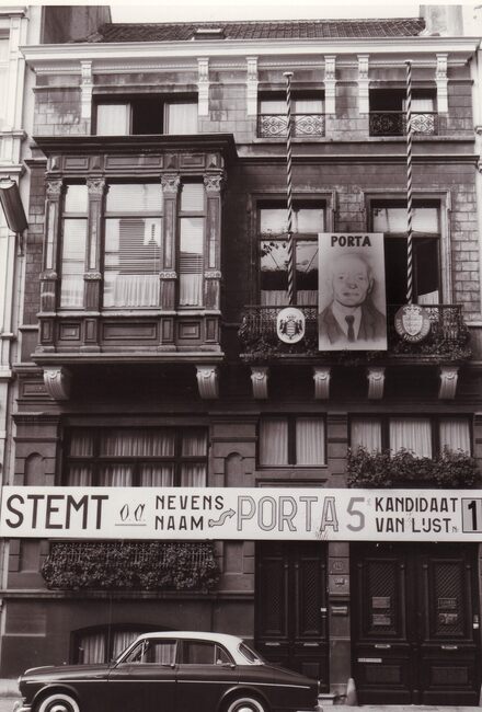Formaat 18 x 13 cm. - Het huis van de familie Porta aan de Van Iseghemlaan 145, hier was ook het consulaat van Monaco en het vice-consulaat van Denemarken gevestigd. De foto werd duidelijk in een kiesperiode genomen…