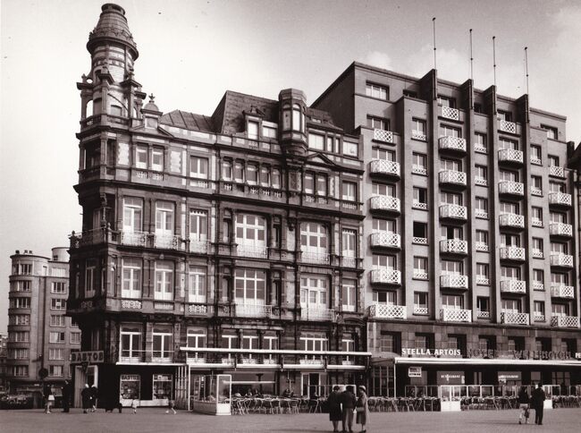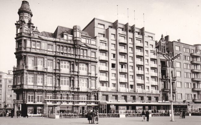 Formaat : 14 x 9 cm. - Het hotel en het restaurant met terras op de Albert I-promenade