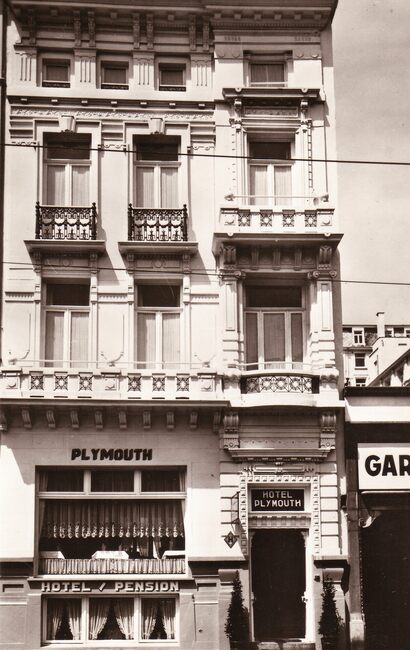 Formaat : 18 x 13 cm. - Hotel National et Merville, Koningsstraat 58. Het hotel had 25 kamers, lopend water, centrale verwarming, 2 badkamers en was het ganse jaar open.