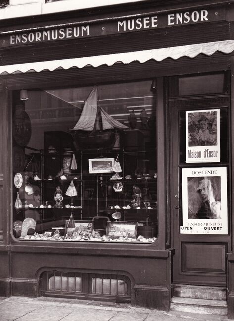 Formaat : 24 x 18 cm. - De etalage van het Ensorhuis met zijn schelpen en maskers staat nog altijd in de belangstelling