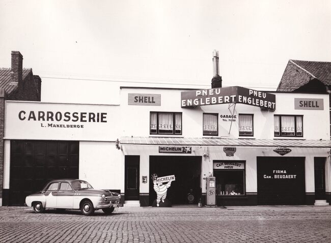 Formaat : 18 x 24 cm. - Garage-carosserie L. Makelberge en bandencentrale Cam. Beudaert aan de Torhoutsesteenweg 485.