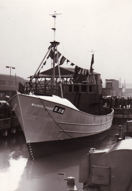 De O.118 "Maurits Roger", stalen motortreiler, kort na de tewaterlating op de werf V.O.S. (Verenigde Oostendse Scheepswerven) voor rederij PVBA De Trawler. De scheepswerf V.O.S. was eigenlijk de voortzetting van…