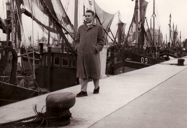 De Vlaamse zanger Will FERDY,of Werner FERDINANDE °Gent 09-03-1927,op wandel langs de Visserskaai.