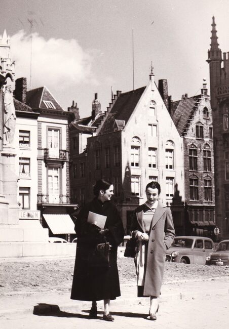 Claire BLOOM en Oona O'NEIL echtgenote van filmster Charlie CHAPLIN te Brugge.