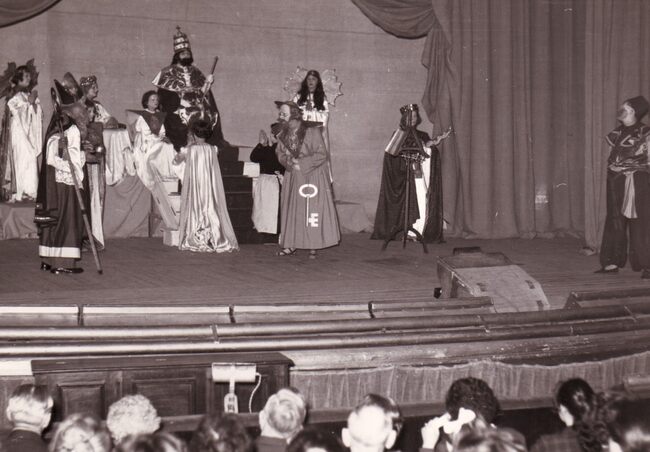 Een toneelopvoering in de schouwburg.