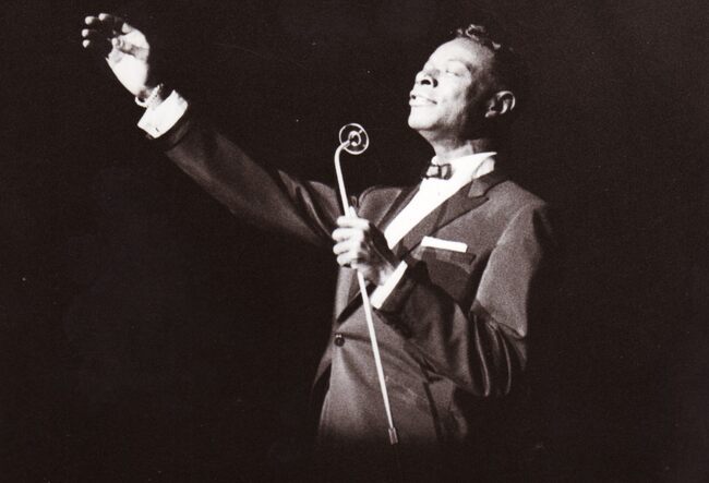 De zwarte Amerikaanse zanger Nat King COLE (of Nathaniel Adam COLES) treedt op in het kursaal.