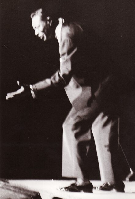 Nat King COLE of Nathaniel Adam COLES ° Montgomery (U.S.) 17-03-1916 + Santa Monica (U.S.) 15-02-1985, geef een handtekening weg bij zijn optreden in het kursaal.