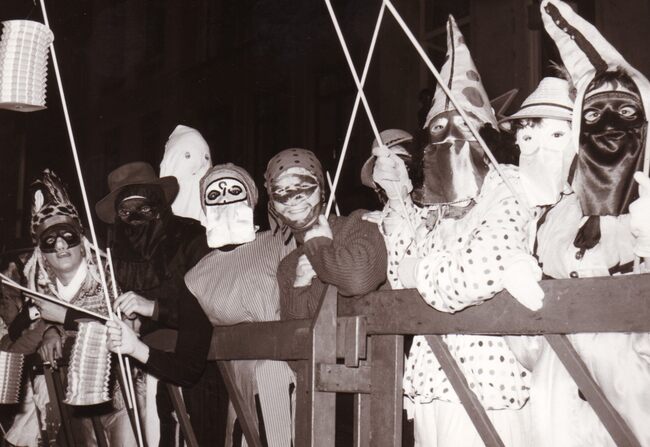 Enkele gemaskerde deelnemers aan de cimanteirenstoet.