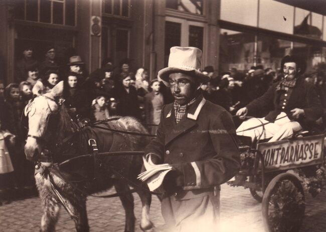 De groep nr.38, "De student van Mont Parnasse", met paard en kar in de Carnavalstoet.
