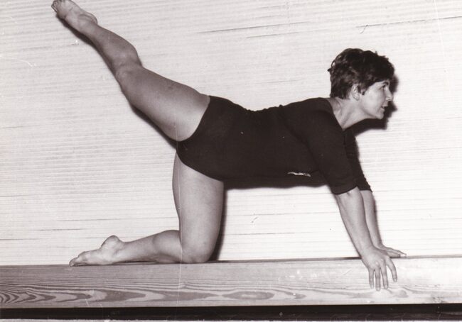 Een turnster op de evenwichtsbalk.