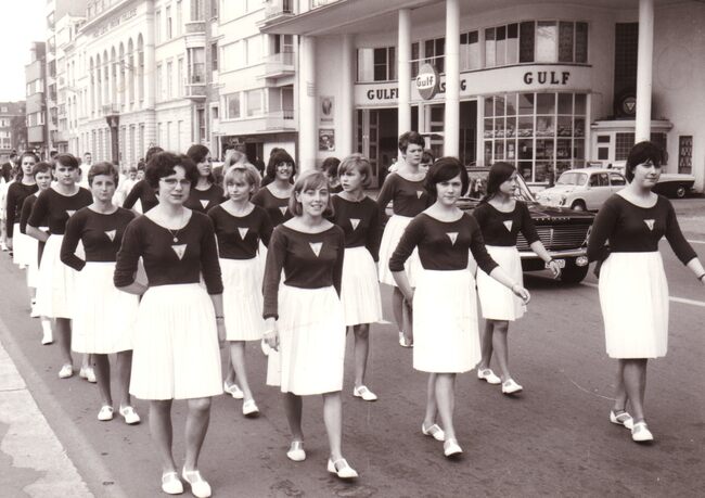 De dames van turnvereniging Noordzee (?) gaan optreden in het kursaal.