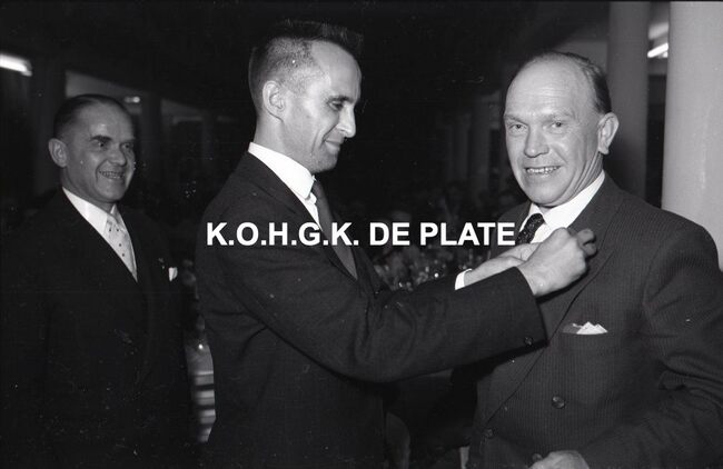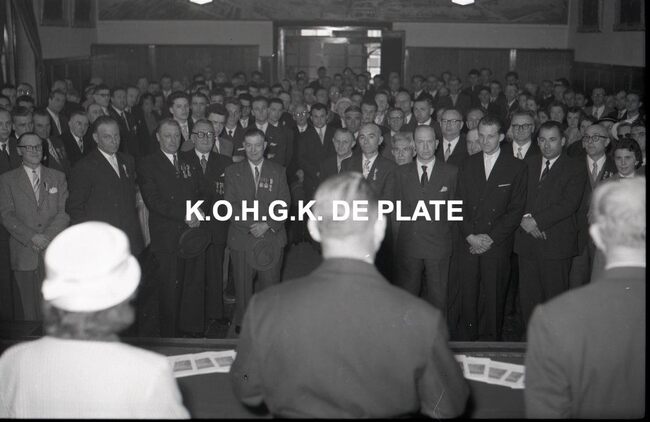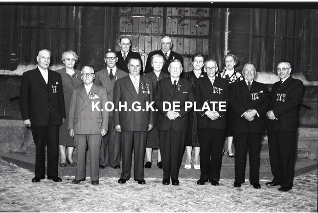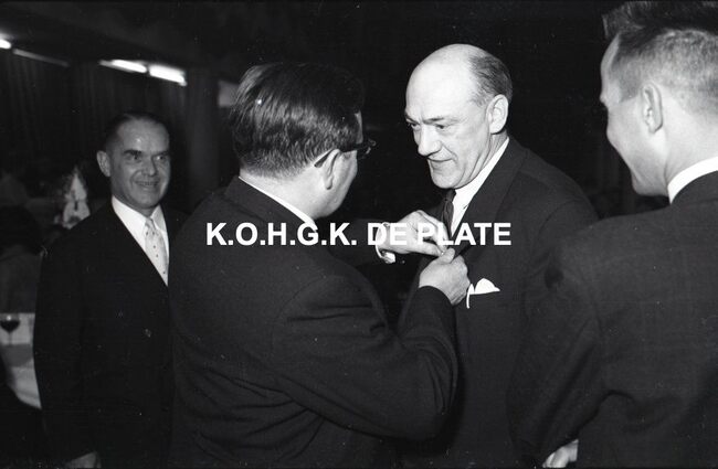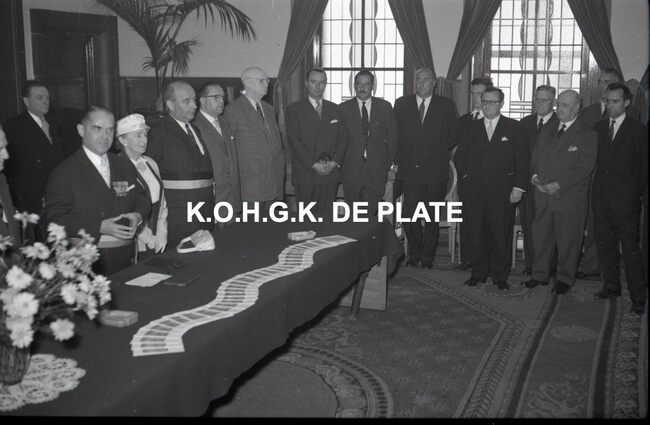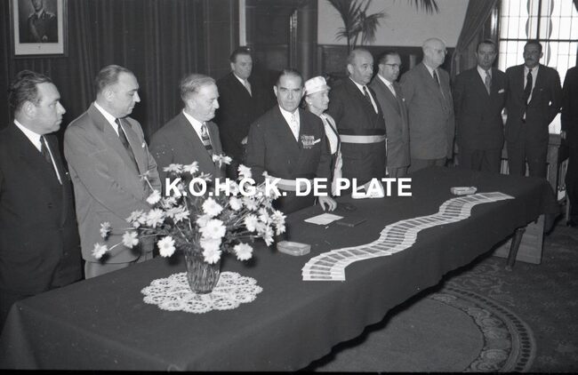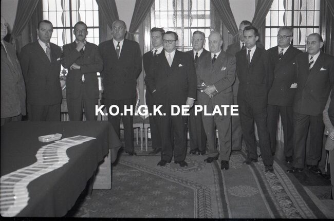 FOTO LUCVALCKE FRÈRES (IJZERHANDEL) ; VIERINGENVAN GLABBEKE ADOLPHE (1904-1959) (BURGEMEESTER)TRATSAERT BERTHA MARIA (1885-1963) (POLITICA)DEHOUCK KAMIEL (1908-1992) (POLITICUS)BONNEVIE FERNAND (BEHEERDER FIRMA VALCKE)BONNEVIE JACQUES (BEHEERDER FIRMA VALCKE)VAN ELSLANDE ADOLPHE (DIRECTEUR FIRMA VALCKE)