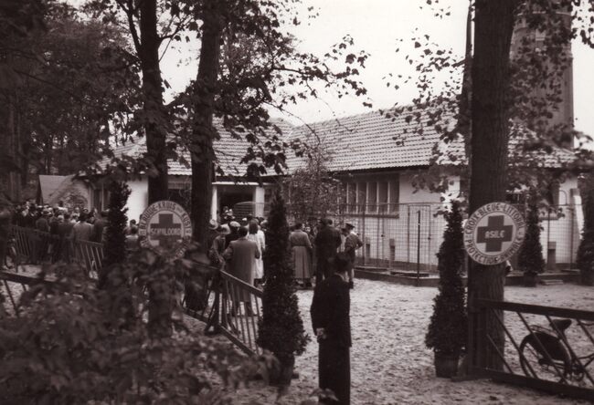 Formaat 13 x 18 cm. - Openen van het dierenasiel aan de Iependreef in het Maria Hendrikapark. Centraal op de eerste rij, burgemeester Henri Serruys. In 1950 wordt in opdracht van Het Blauwe Kruis der Kust op het terrein…