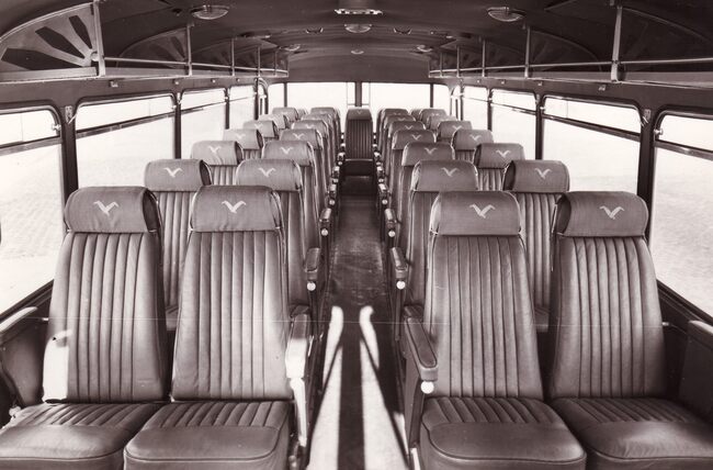 Formaat : 13 x 18 cm. - Interieur van een autocar van de firma The Grey Cars