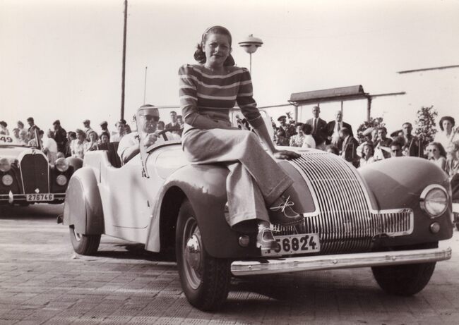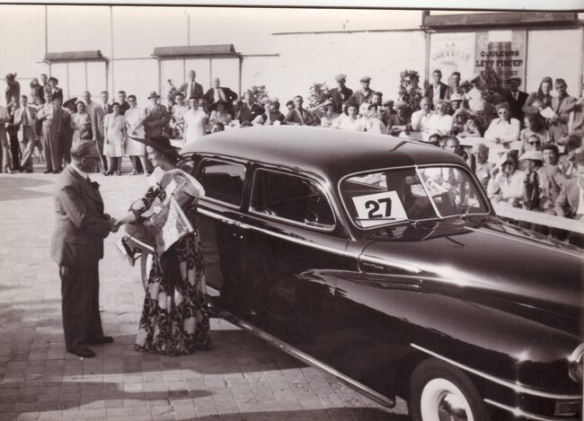 Formaat : 13 x 18 cm. - Ter gelegenheid van de Koers der Gentlemen ten voordele van het Koninklijk Werk Ibis had op het stadhuis een receptie plaats en kon men achteraf Sylveer Maes achter het stuur van een oldtimer zien…