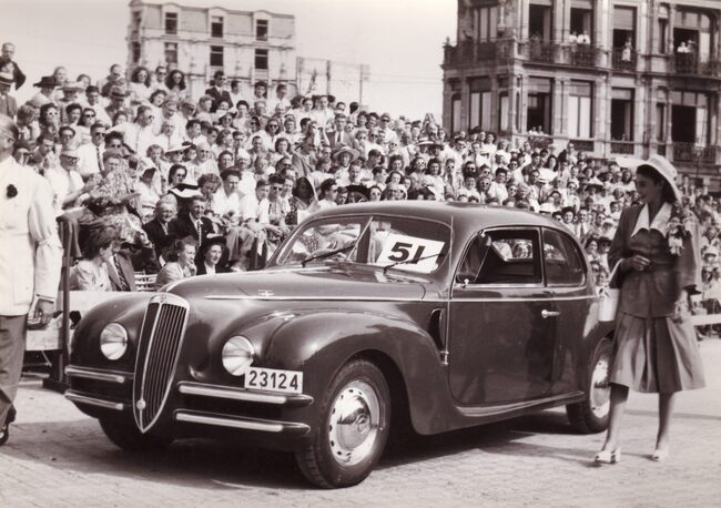 Formaat : 13 x 19 cm. - edstrijd voor auto's op de Albert I-Promenade nabij Petit NIce. Een deelnemende Lancia