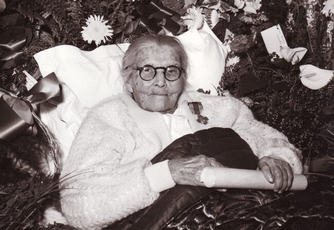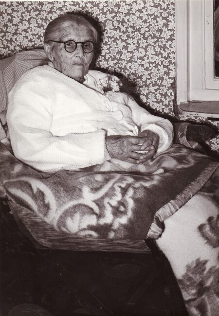Formaat : 18 x 13 cm. - De 100-jarige Mathilde Desmet (mevrouw Henri Deweert)