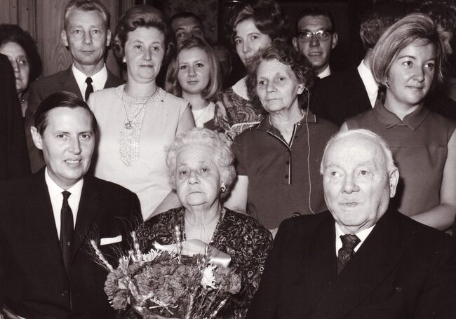 Formaat : 13 x 18 cm. - Burgemeester Jan Piers met het echtpaar en familie