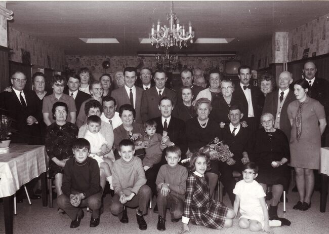 Formaat : 13 x 18 cm. - Waarnemend schepen Jozef-Marie Porta met het echtpaar en familie