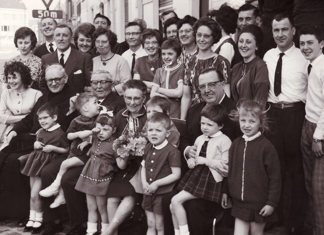 Formaat : 13 x 18 cm. - Henri Lagrou en echtgenote Rachel Verbrugghe, woonachtig Spoorwegstraat 40, Oostende, gehuwd te Oostende op 15 september 1917, vierden hun gouden bruiloft te Oostende op 16 september 1967. We zien…