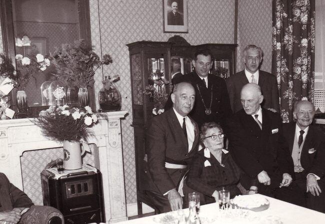 Formaat : 13 x 18 cm. - Burgemeester Jan Piers feliciteert een 100-jarige vrouw.