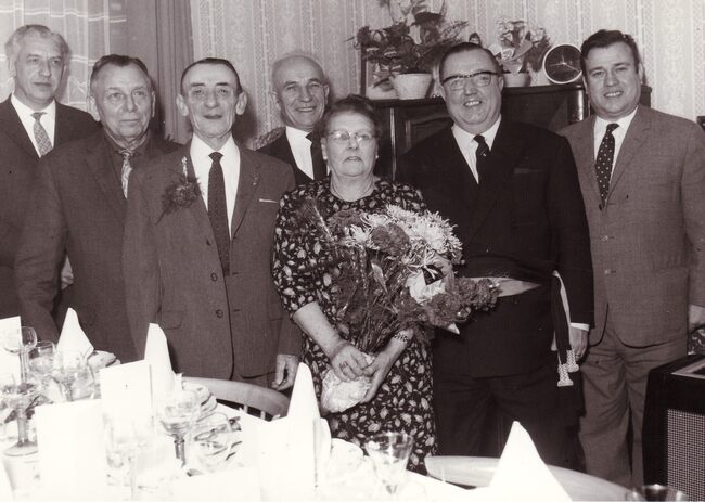 Formaat : 13 x 18 cm. - De vereniging werd ontvangen op het stadhuis. Centraal schepenen Kamiel Dehouck en Jozef-Marie Porta.