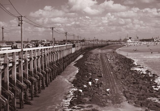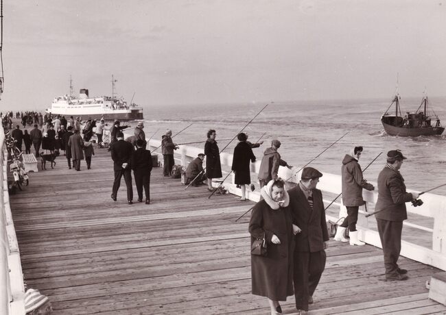 Formaat : 13 x 18 cm. - Lijnvissers op het Weststaketsel. Eerder stonden hier kruisnetten om te vissen.