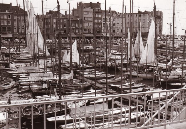 Formaat : 13 x 18 cm. - Jachten in het Montgomerydok bij het gebouw van het NRSYC. In de achtergrond een carferry en het gebouw van het loodswezen
