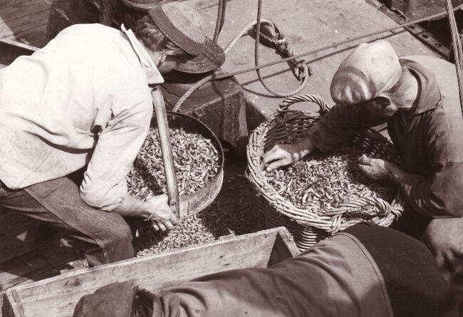 Formaat : 13 x 18 cm. - Garnaalvissers zeven hun vangst.