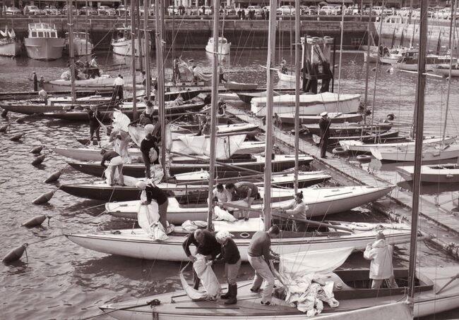 Formaat : 13 x 18 cm. - Jachten in het Montgomerydok. De jachtlui maken hun bootjes klaar voor een wedstrijd.
