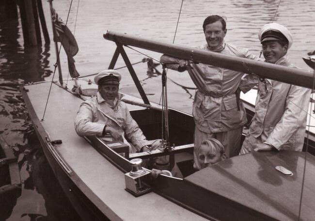 Formaat : 13 x 18 cm. - Deelnemers aan de zeilwestrijd. De bemanning van een brits jacht.