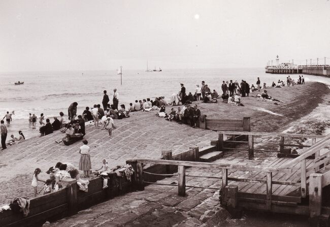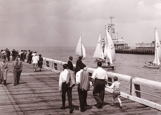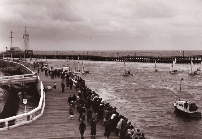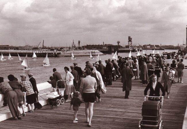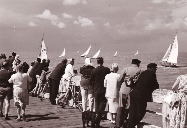 Formaat : 13 x 18 cm. - Veel toeschouwers op het Weststaketsel voor de zeilwedstrijd? In de achtergrond de Oosteroever